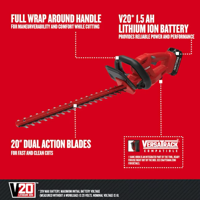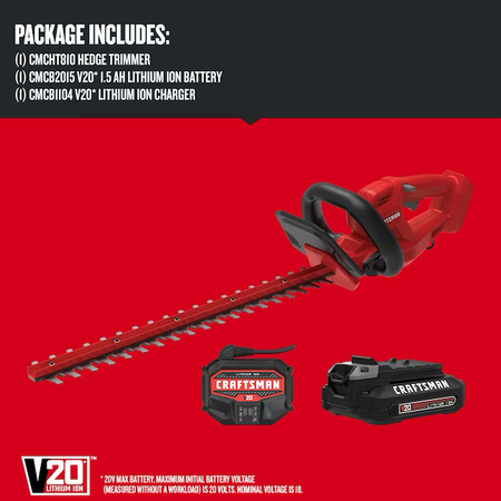 CRAFTSMAN V20 Cortasetos con batería de 20 voltios máx., 20 pulgadas, 1,5 Ah (batería y cargador incluidos)