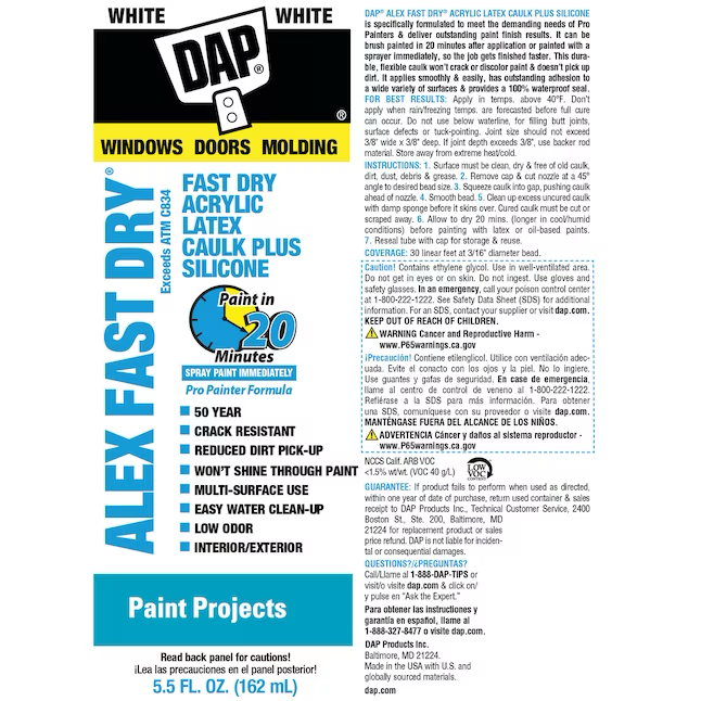 Masilla de látex para pintar blanca de secado rápido DAP Alex, 5.5 oz