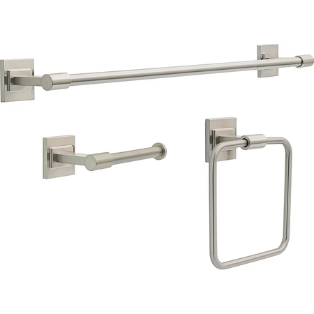 Juego de accesorios decorativos para baño de 3 piezas Mclaren Spotshield de níquel cepillado de Delta con barra para toallas, soporte para papel higiénico y aro para toallas