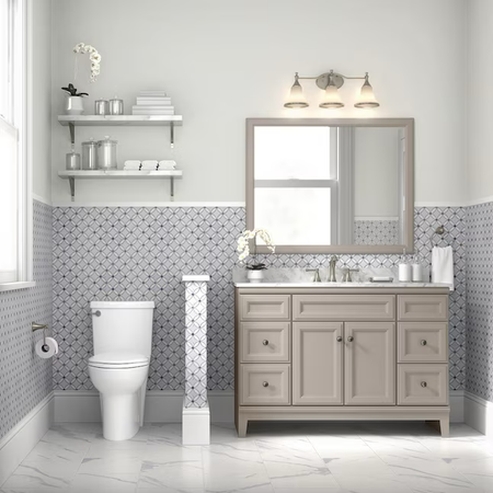 • Compatible con encimeras de tocador de 49 pulgadas de ancho x 22 pulgadas de profundidad (se venden por separado)