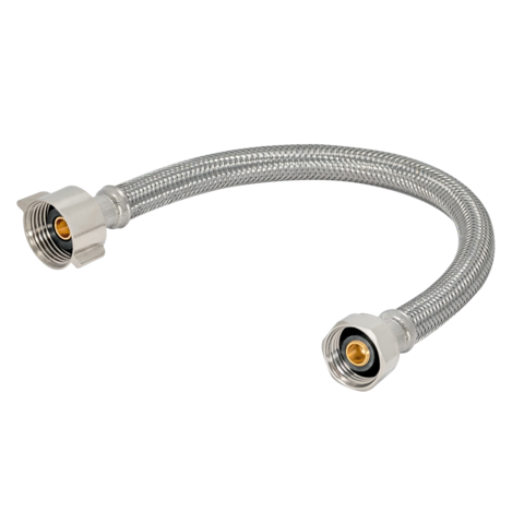 El conector para inodoro Steel-Flex de Eastman® cuenta con una conexión de tuerca de bola de 1/2 pulgada x 7/8 pulgada. Está construido para durar con un núcleo de PVC no tóxico de alta calidad, un refuerzo de nailon trenzado multifilamento, una cubierta exterior de vinilo transparente y un exterior de acero inoxidable trenzado de grado 304 diseñado para evitar que se doble y se doble. Este conector seguro de línea de suministro de inodoro está equipado con púas de latón de flujo total y una tuerca esférica de latón macizo cromado. Este conector para inodoro de serie profesional mide 16 pulgadas de largo. El acero inoxidable trenzado flexible permite una fácil instalación en espacios reducidos. Aprobado por la UPC. Certificado NSF y CSA. Cumple con la ley sin plomo.