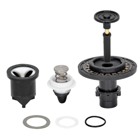 Reparar las piezas desgastadas de la válvula de descarga puede ahorrar agua y dinero. Utilice este kit de reparación de armarios de 1,5 GPF para reemplazar sus urinarios Sloan/Zurn actuales. El kit incluye kit v/b, kit de manija, kit de reparación interior y junta tórica.
