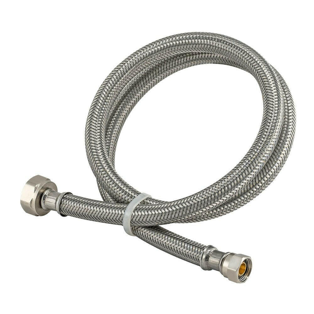 El conector para grifo Steel-Flex de Eastman® cuenta con una conexión de tubería de hierro hembra de compresión de 3/8 de pulgada x 1/2 pulgada. Este conector de grifo de alta calidad está construido con un núcleo de PVC no tóxico, un refuerzo de nailon trenzado multifilamento, una cubierta exterior de vinilo transparente y un exterior de acero inoxidable trenzado de grado 304 diseñado para evitar torceduras y engarces. Está equipado con púas de latón de flujo total y tuercas hexagonales de latón macizo niquelado. Esta línea de suministro de grifo de larga duración tiene 36 pulgadas de largo. El acero inoxidable trenzado flexible permite una fácil instalación en espacios reducidos. Está aprobado por UPC, CSA y NSF. Cumple con la normativa sin plomo.