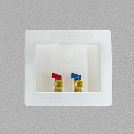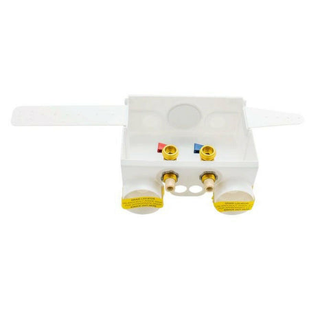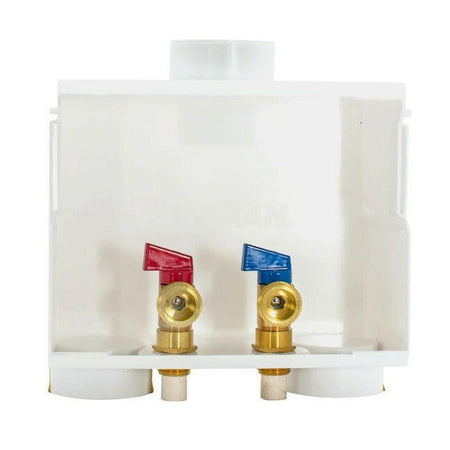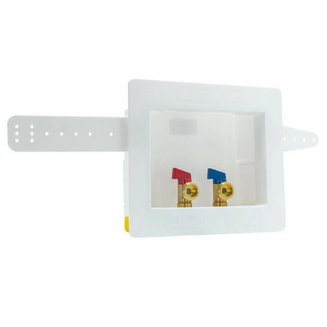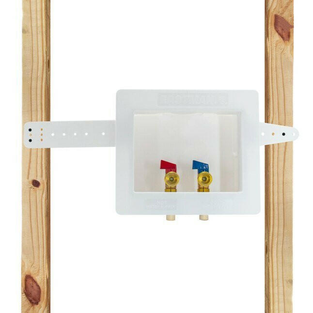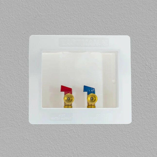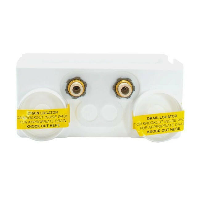 La caja de salida de la lavadora Eastman proporciona una instalación de suministro de agua segura para las lavadoras. Es una caja de una sola pieza construida con plástico no corrosivo de alto impacto. Se puede instalar un desagüe del lado derecho o del lado izquierdo. Tiene un diseño empotrado que se adapta a paneles de yeso de 1 pulgada. La caja de salida viene con un soporte de soporte preinstalado, una cubierta de placa frontal y válvulas de bola de frío y calor de 1/4 de vuelta para cerrar durante el mantenimiento. La caja de salida de esta lavadora tiene una conexión de entrada de CPVC de 1/2 pulgada y una salida de rosca de manguera macho de 3/4 pulgada. La caja de salida tiene áreas perforadas para instalar un desagüe del lado derecho o izquierdo. Aprobado por la UPC.