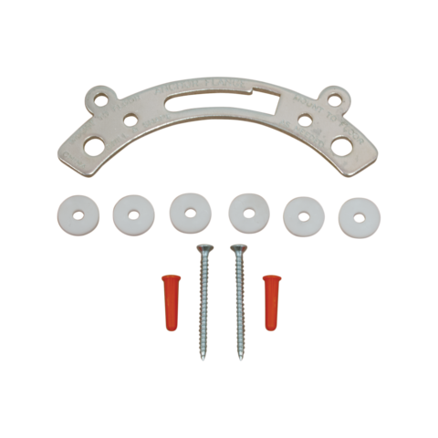 • Incluye brida de anclaje, 2 anclajes de plástico, 2 tornillos de metal y 6 arandelas de plástico.