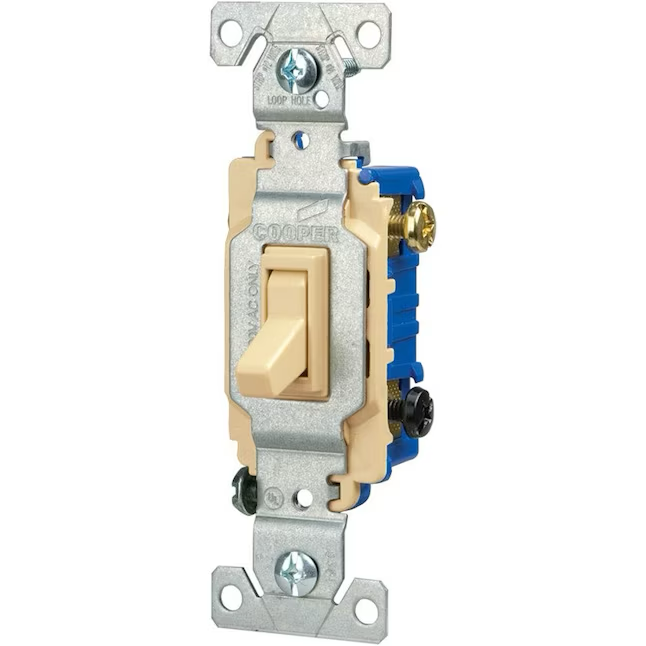 Eaton Interruptor de luz de palanca de 3 vías, 15 amperios, color marfil