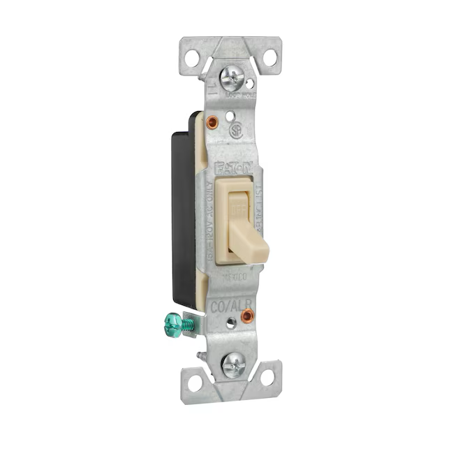 Eaton Interruptor de luz de palanca unipolar de 15 amperios, color marfil