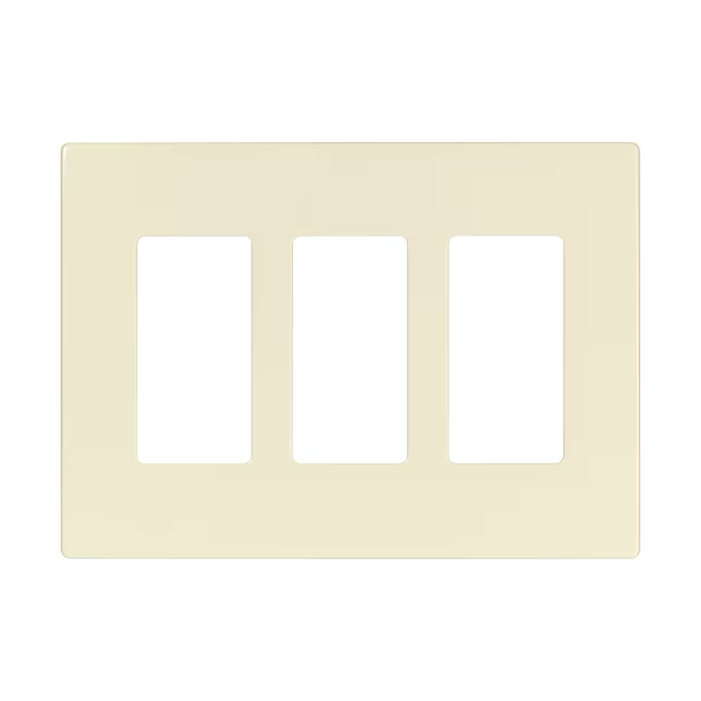 Placa de pared Decorator de tres unidades, de tamaño mediano, sin tornillos, para uso con receptáculo dúplex estilo Decorator, GFCI o interruptor Decorator.