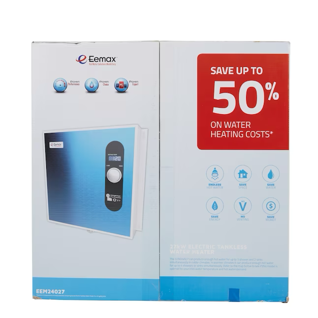 Obtenga agua caliente instantánea, constante e infinita con el calentador de agua sin tanque Eemax de 27 kW