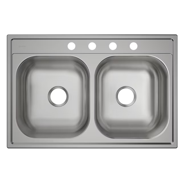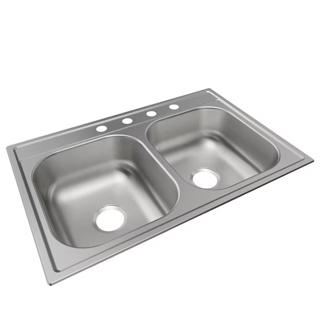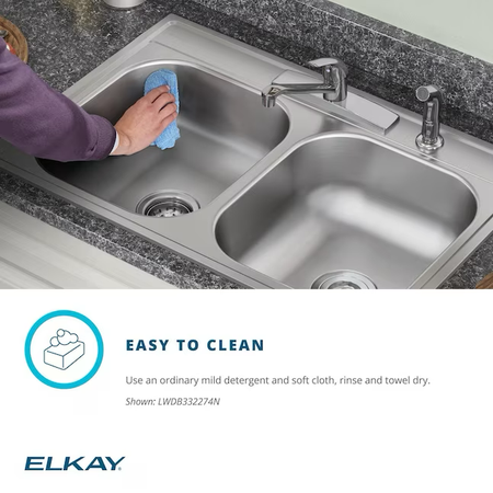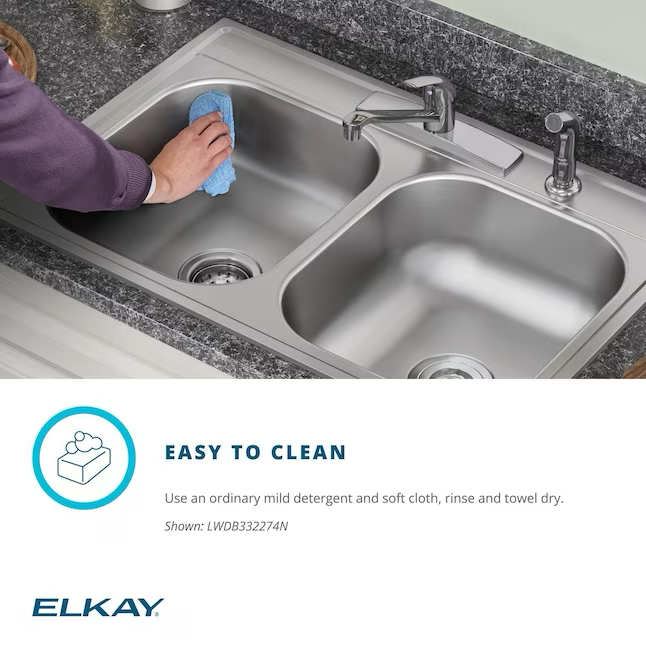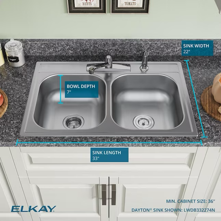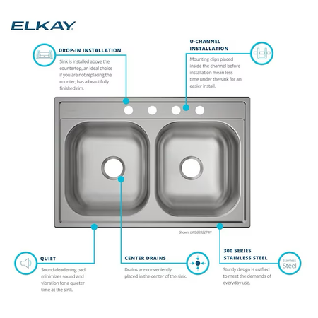 Elkay Dayton Fregadero de cocina empotrable de 33 x 22 pulgadas de acero inoxidable con doble tazón igual y 4 orificios
