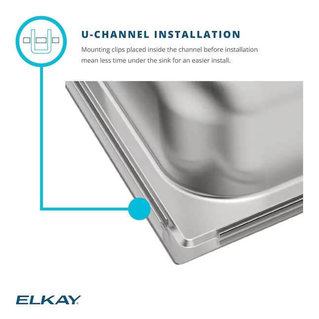• Instalación en canal en U: los clips de montaje colocados dentro del canal antes de la instalación significan menos tiempo debajo del fregadero para una instalación más fácil.