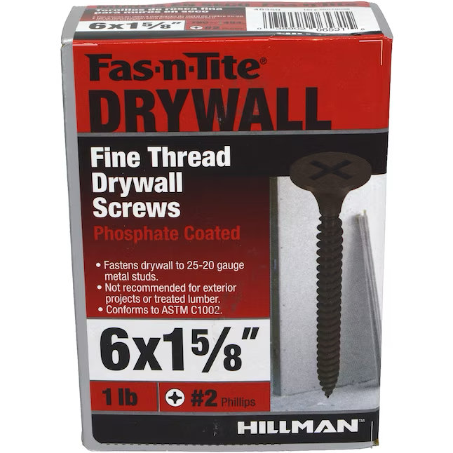 Fas-n-Tite Tornillos para paneles de yeso de rosca fina Bugle # 6 x 1-5/8 pulgadas, 1 libra (paquete de 190)