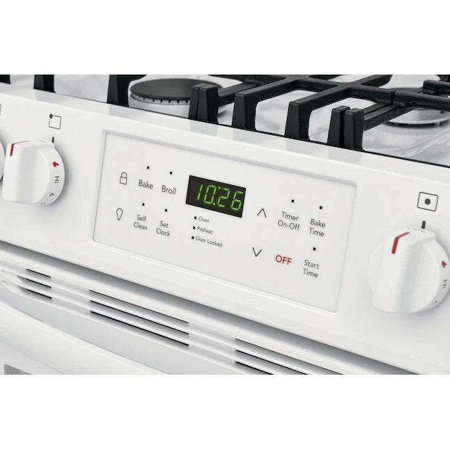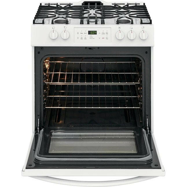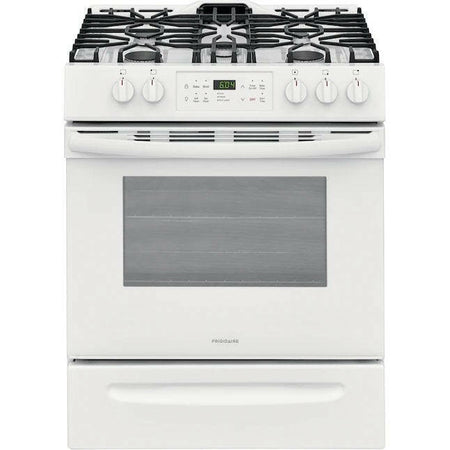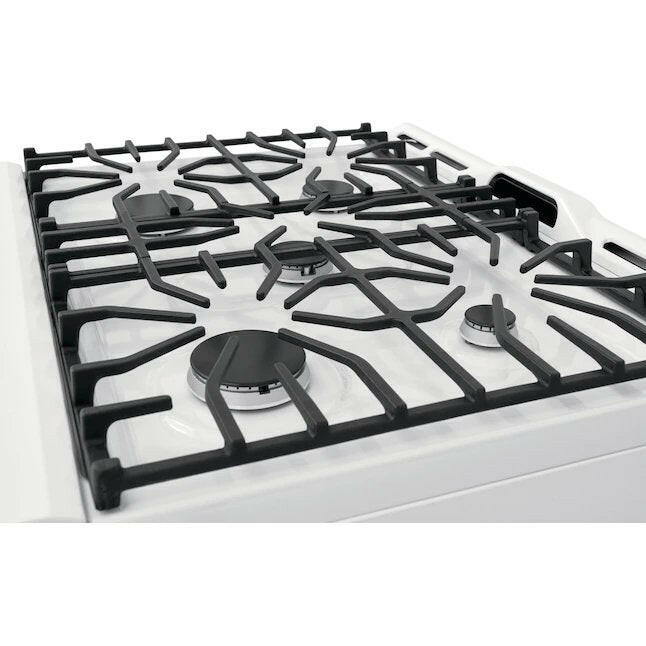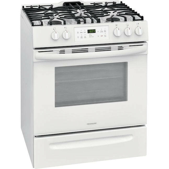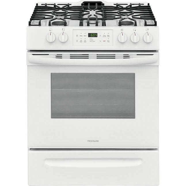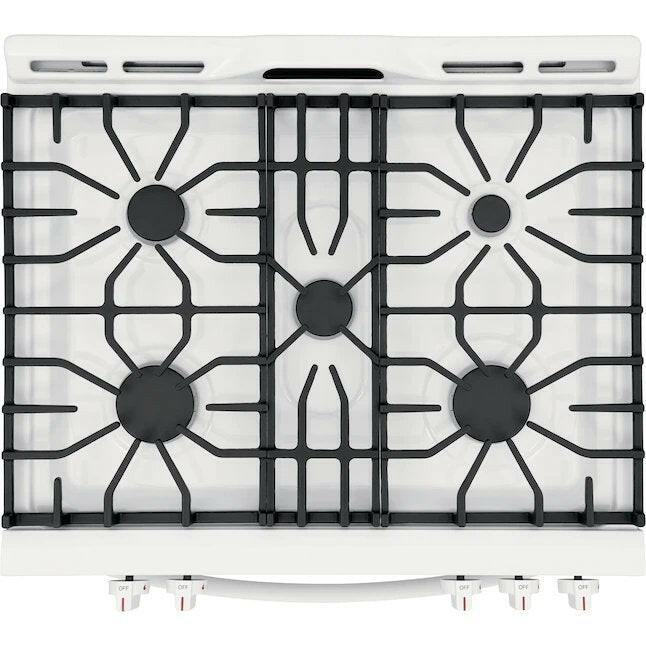 Frigidaire Estufa de gas deslizable autolimpiante de 30 pulgadas, 5 quemadores, 5 pies cúbicos (blanco)