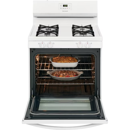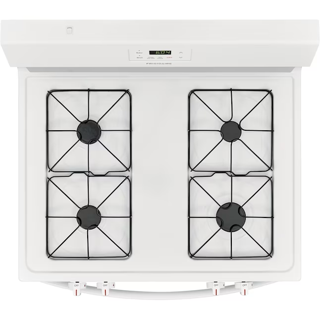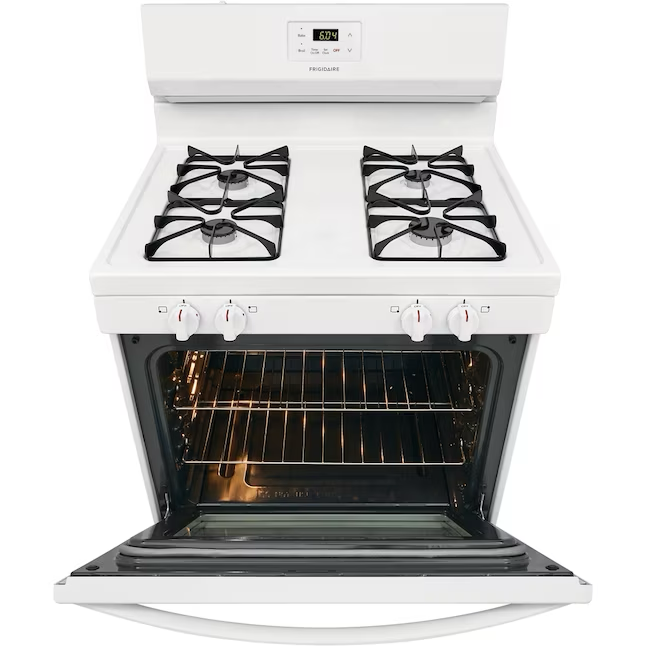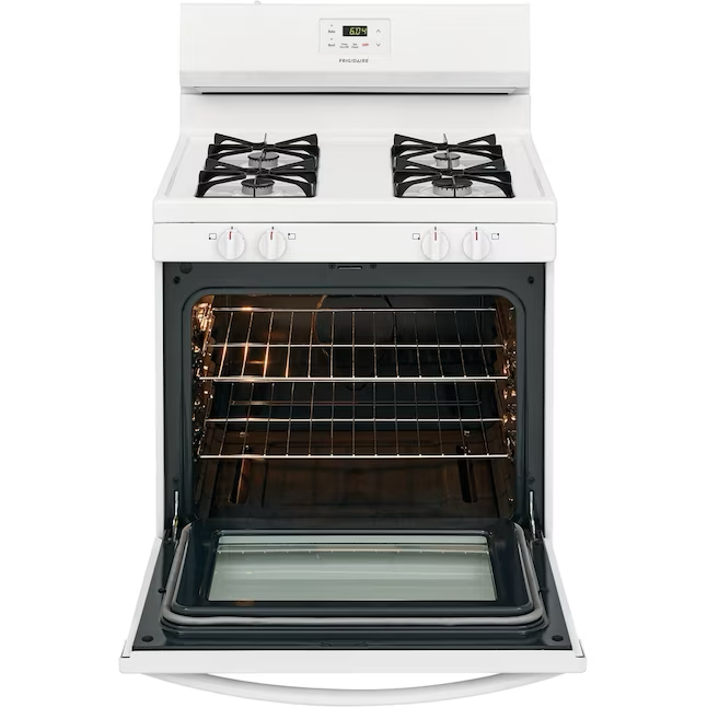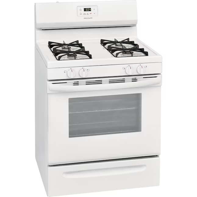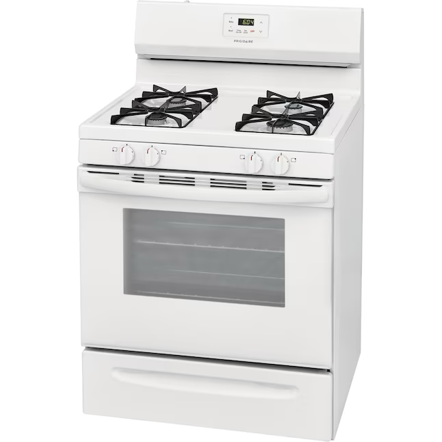 Estufa de gas natural independiente Frigidaire de 30 pulgadas, 4 quemadores y 5 pies cúbicos (blanco)