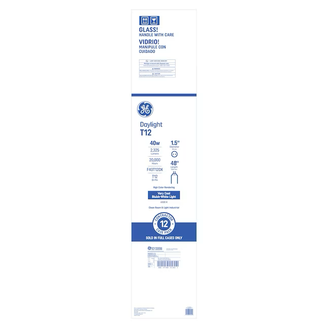 Bombilla fluorescente GE de 40 vatios EQ T12 de luz diurna mediana de dos pines (t12) (paquete de 12)