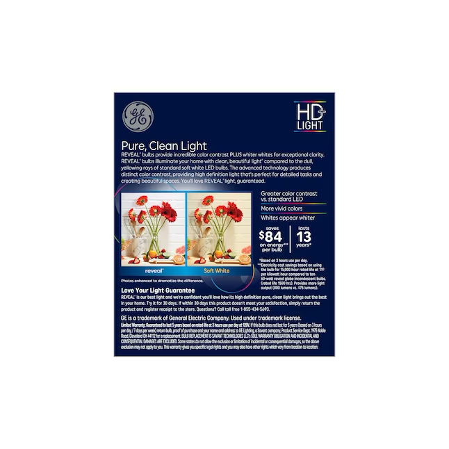 - Specifications Temperatura de color (Kelvins) 2700 Nombre de la serie Revelar HD Color claro Realzador de color Tipo Decorativo
