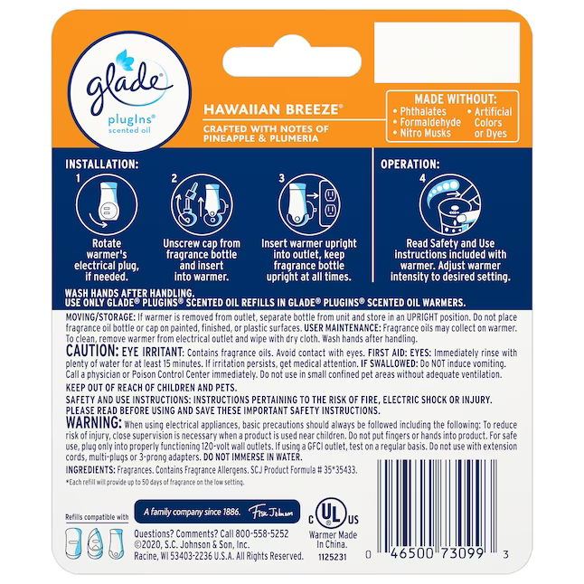 Glade Scented Oil Ambientador de recambio Hawaiian Breeze de 0,67 onzas líquidas