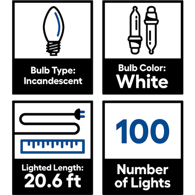 Luces navideñas incandescentes transparentes de 100 unidades con cable blanco de Holiday Living