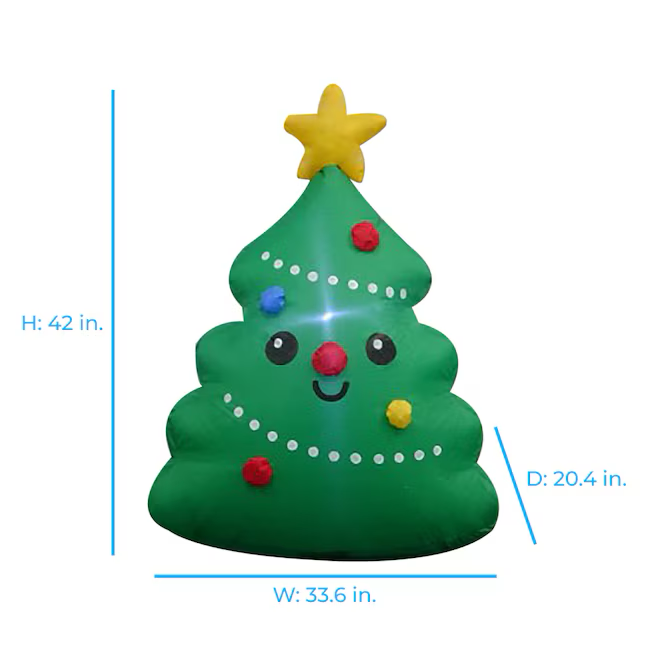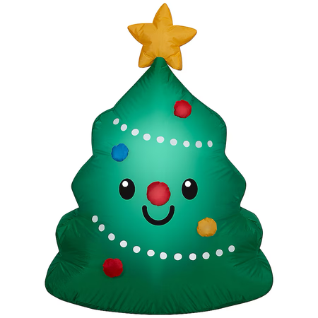 Árbol de Navidad inflable Airblown® Kawaii para interiores y exteriores de 3,6 pies de alto x 2,9 pies de ancho x 1,9 pies de profundidad con cara linda