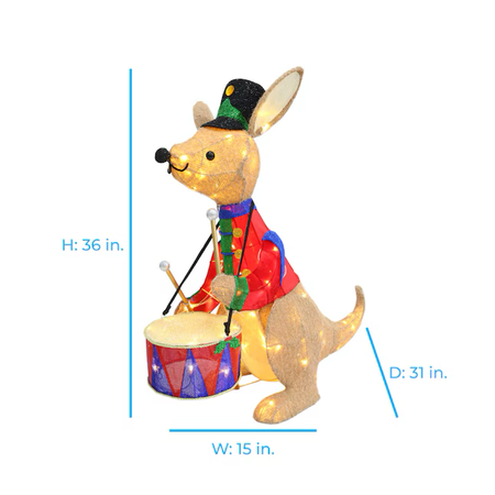 Decoración con forma de canguro baterista de 3 pies con luces LED para Holiday Living