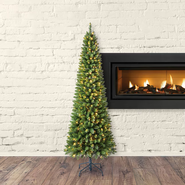 Árbol de Navidad artificial con luces LED preiluminadas Greensboro Pencil de 7 pies de Holiday Living