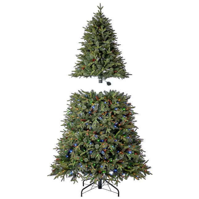 El árbol de Navidad artificial Hayden Pine de 9 pies preiluminado de Holiday Living, alegre y festivo, irradia estilo navideño. La función Quick Set® facilita la instalación: simplemente deslice las secciones del árbol juntas y la conexión de poste a poste enciende automáticamente las luces. Brillará alegremente durante toda la temporada gracias a las 1000 mini luces LED que cambian de color en las 4943 puntas de ramas mixtas. La función SteadyBright significa que las luces seguirán brillando, incluso si se funde una bombilla. Predecorado con piñas de imitación, este árbol artificial se completará con la adición de sus propias decoraciones. Un soporte de metal incluido garantiza que su árbol permanezca seguro. Su maravillosa celebración festiva estará felizmente completa con el árbol de Navidad artificial Hayden Pine de 9 pies.