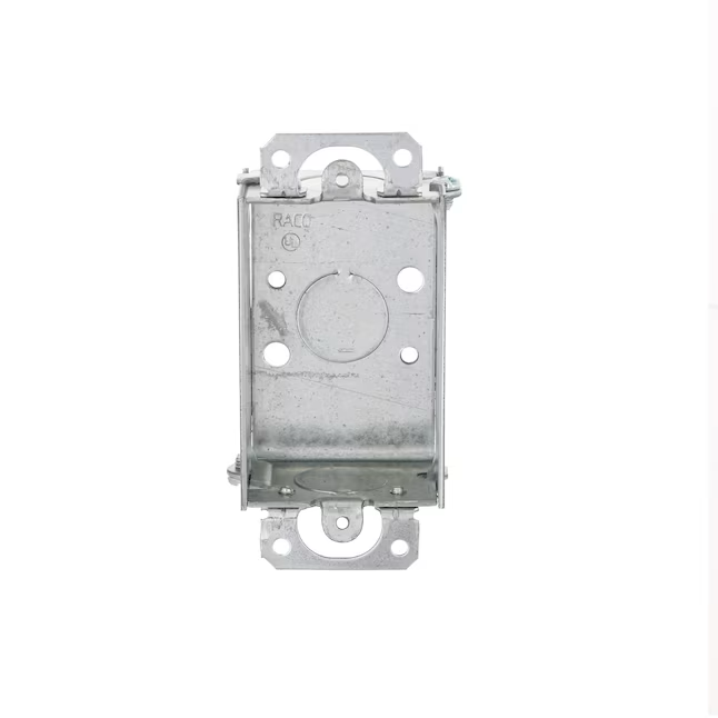 Caja eléctrica con interruptor y tomacorriente Hubbell RACO de 1 módulo, de acero galvanizado, para trabajos nuevos y antiguos