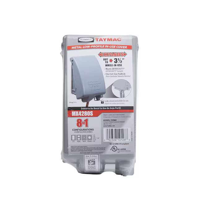 Cubierta para caja eléctrica resistente a la intemperie de metal gris rectangular de 1 unidad Hubbell TayMac