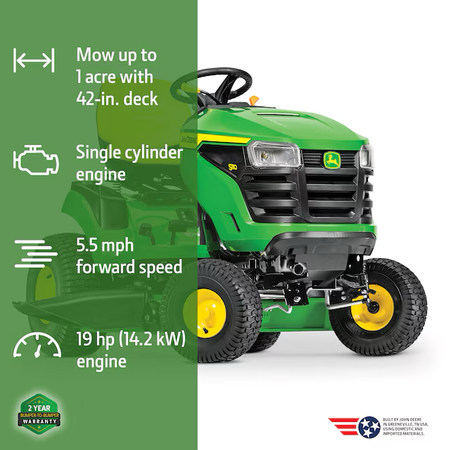John Deere S110 Cortadora de césped a gasolina de un solo cilindro de 42 pulgadas y 19 HP