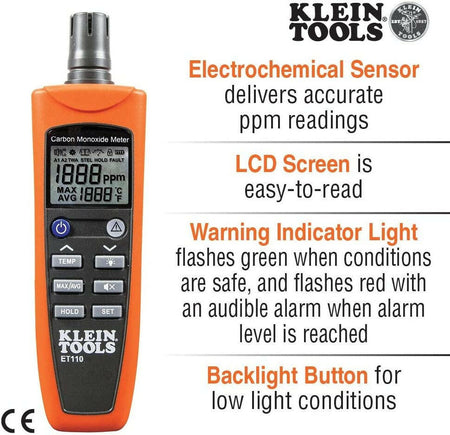 - El medidor de monóxido de carbono fácil de usar detecta y mide los niveles de concentración de gas monóxido de carbono
