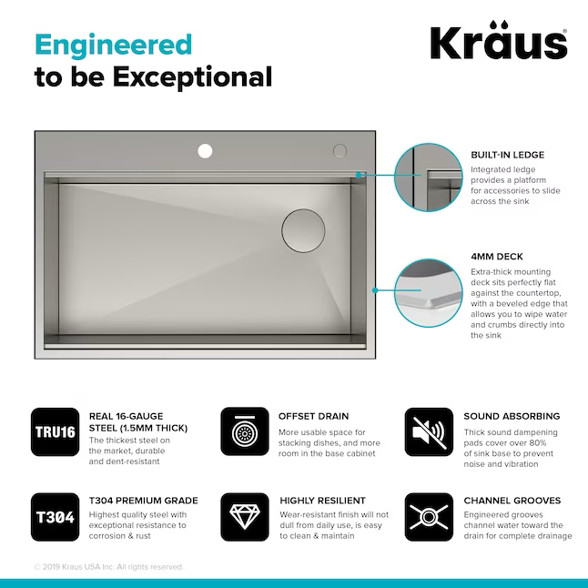 • ACERO DE CALIBRE 16 RESISTENTE: Fabricado con TRU16, el acero inoxidable más grueso del mercado, este fregadero ultraduradero es altamente resistente a la corrosión y abolladuras.