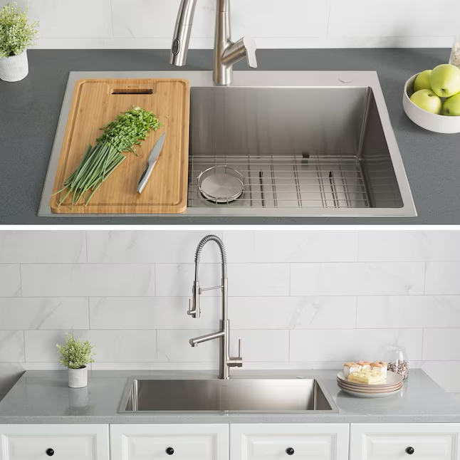 Conocidos por su calidad excepcional, los fregaderos Standart PRO cuentan con esquinas contemporáneas de radio estrecho y ranuras de canal diseñadas para un drenaje superior. El diseño de montaje doble le permite instalar este fregadero como mueble bajo encimera o empotrado en cualquier tipo de encimera de cocina. Todo el hardware de montaje está incluido para una fácil instalación.
