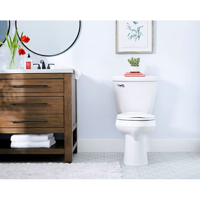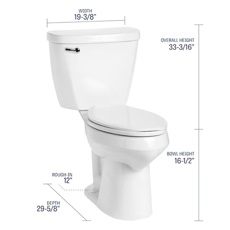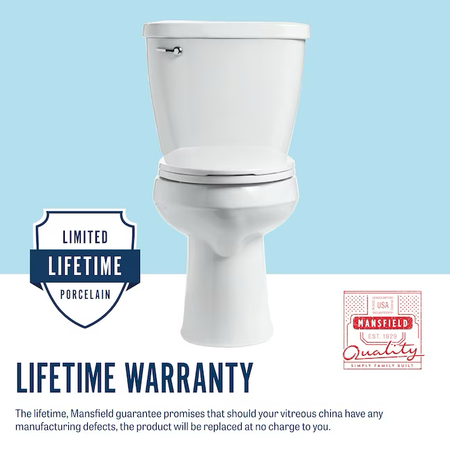 Mansfield Summit White Silla alargada Altura Inodoro WaterSense de 2 piezas con cierre suave, 12 pulgadas, empotrable, 1,28 GPF