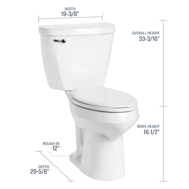 • Dimensions Profundidad ensamblada (pulgadas) 29.625 Altura del tazón con asiento 17-1/4 pulgadas Altura ensamblada (pulgadas) 33.1875 Altura del tazón sin asiento 16-1/2 pulgadas Tamaño aproximado 12 pulgadas Ancho ensamblado (pulgadas) 19.375 Tamaño de la trampa 2 pulgadas Altura del tazón Altura de la silla