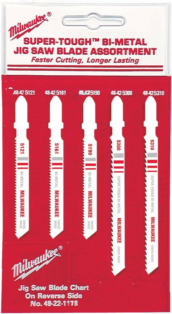 Milwaukee 49-22-1178 Surtido de hojas de sierra caladora para corte de metal/madera con vástago en T, paquete de 5