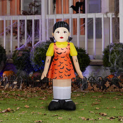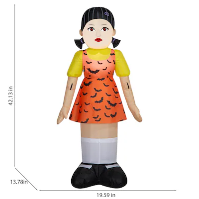 INFLABLE DE HALLOWEEN: Muñeca Young-hee inflable Airblown® para interiores y exteriores de 3,5 pies de alto x 1,8 pies de ancho x 1,2 pies de profundidad con vestido de murciélago de Squid Games