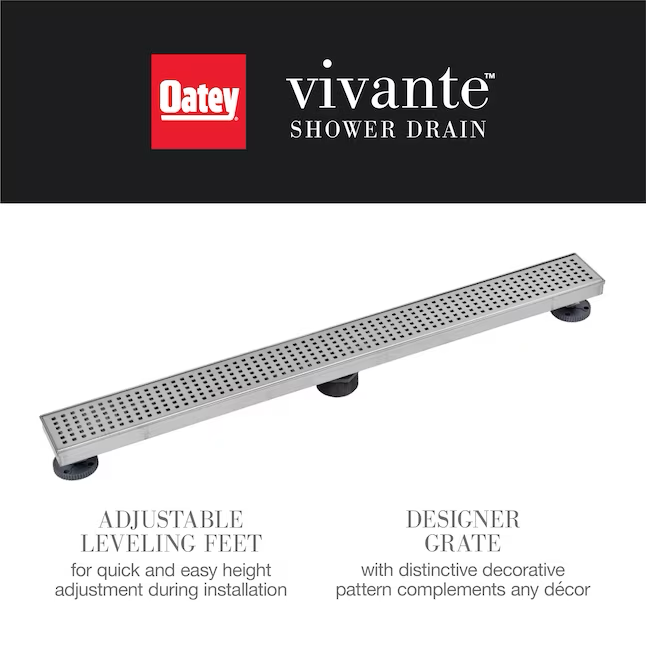 Agregue un toque de su estilo único a su ducha con los desagües decorativos para ducha Vivante® de Oatey®. Este drenaje lineal decorativo de 24 pulgadas es la combinación perfecta de elegancia y funcionalidad, con elegantes materiales de acero inoxidable hechos para durar. El diseño cuidadosamente diseñado del canal inclinado garantiza un flujo de agua continuo para un drenaje perfecto. El adaptador de salida de 2 pulgadas con junta tórica se conecta a salidas de drenaje estándar. La herramienta de elevación incluida y la canasta extraíble le permiten levantar fácilmente la tapa del drenaje y obtener un fácil acceso para limpiarlo a fondo. El drenaje es compatible con revestimientos impermeabilizantes de PVC y CPE. Los accesorios de drenaje, como la impermeabilización, el adhesivo de unión y la base de drenaje, se venden por separado. Los productos Oatey se han ganado la confianza de los profesionales de plomería durante más de 100 años.