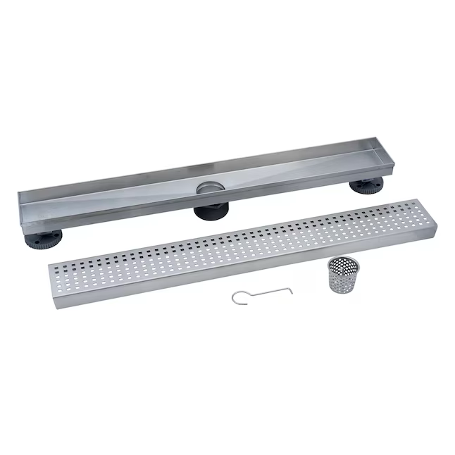 Oatey Vivante Desagüe de ducha lineal de acero inoxidable de 24 pulgadas con patrón cuadrado