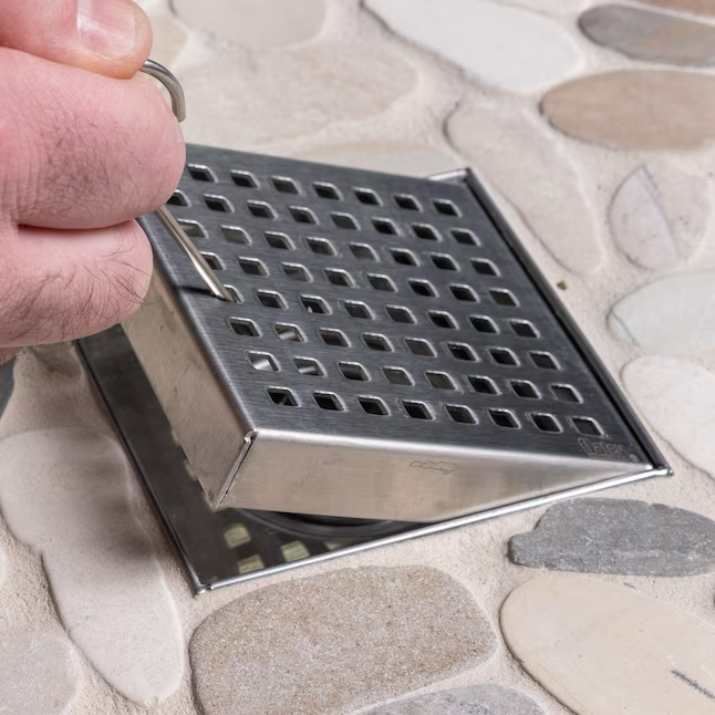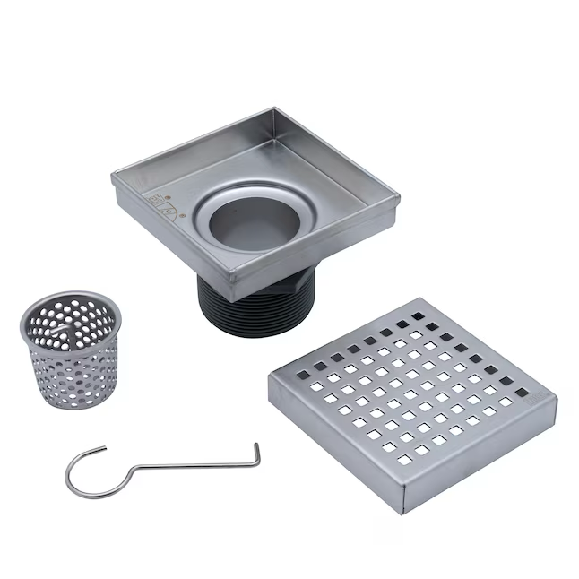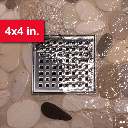 Oatey Vivante Desagüe de ducha cuadrado de acero inoxidable de 4 pulgadas con patrón cuadrado