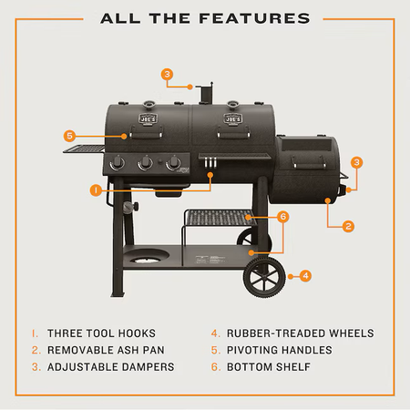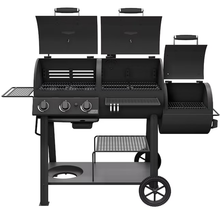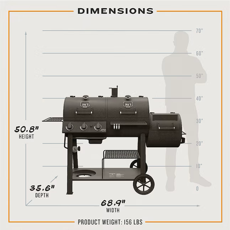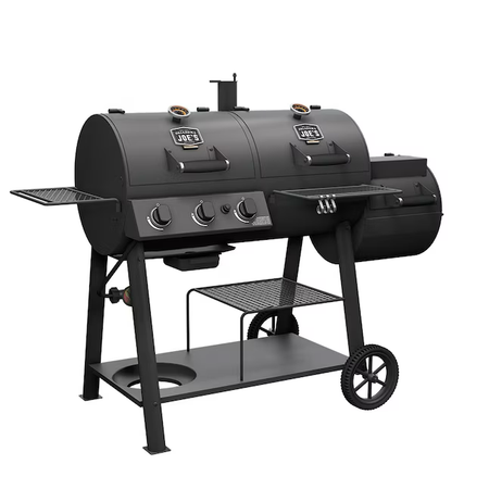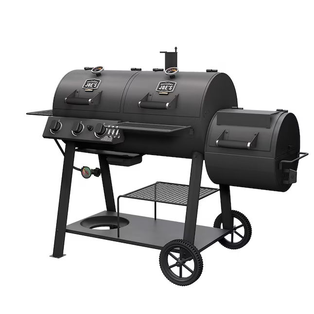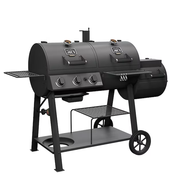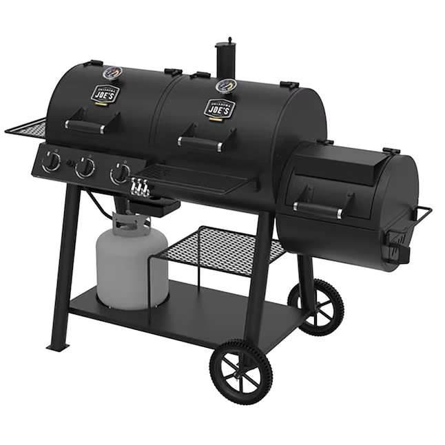 El combo grill & smoker Oklahoma Joes® Canyon te brinda el sabor ahumado real que anhelas junto con el sabor a la parrilla que te encanta. Cocine un bistec jugoso a fuego lento y lento en el ahumador y termínelo con un rápido dorado en reversa en la parrilla de gas. Cuando tengas hambre y no quieras esperar, simplemente enciende la parrilla de gas y comienza a cocinar. No importa lo que se te antoje, el combo grill & smoker Oklahoma Joes® Canyon te lo ofrece.