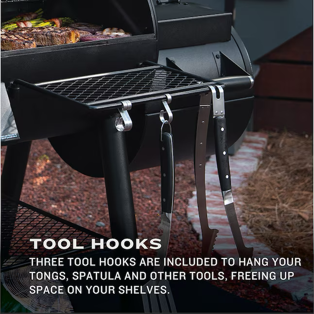 • Ahuma hasta 2 paletas de cerdo y asa 12 hamburguesas en las parrillas principales de 750 pulgadas cuadradas; Asa hasta 15 alitas o 6 hamburguesas en la parrilla de la cámara de combustión de 281 pulgadas cuadradas.