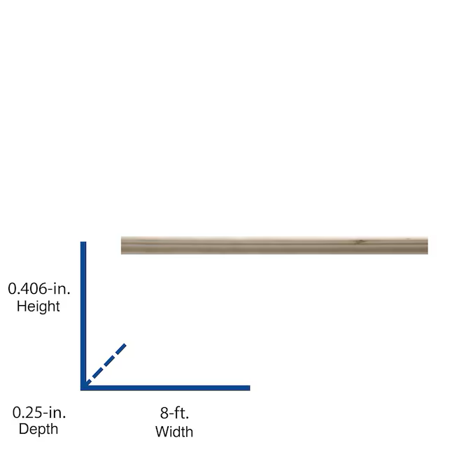 • Dimensions Longitud real (pies) 8 Medición de longitud 8 pies Grosor real (pulgadas) 0,25 Medición de espesor 1/4 pulg. Ancho real (pulgadas) 0.406 Medida de ancho 13/32 pulgadas