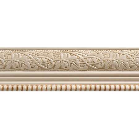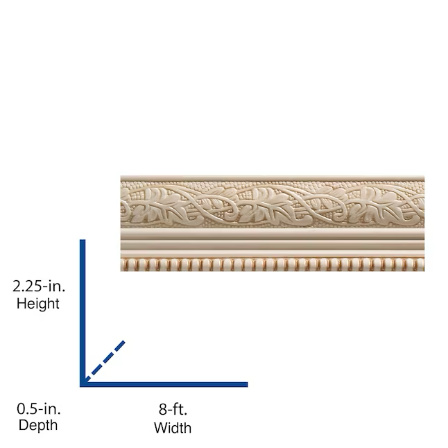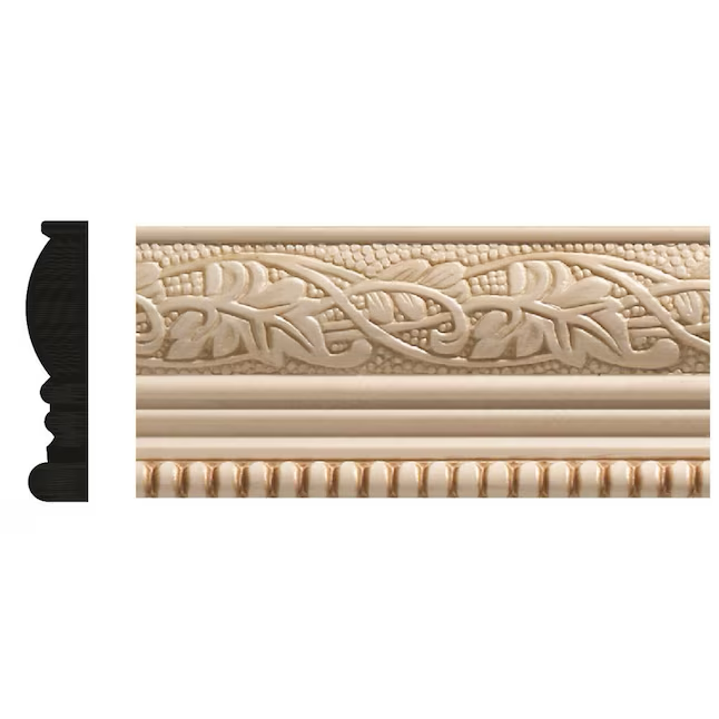 • Moldura para guardasillas, estilo hoja y bola en relieve de 2-1/4 pulgadas de ancho