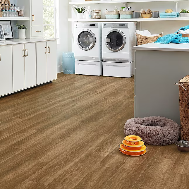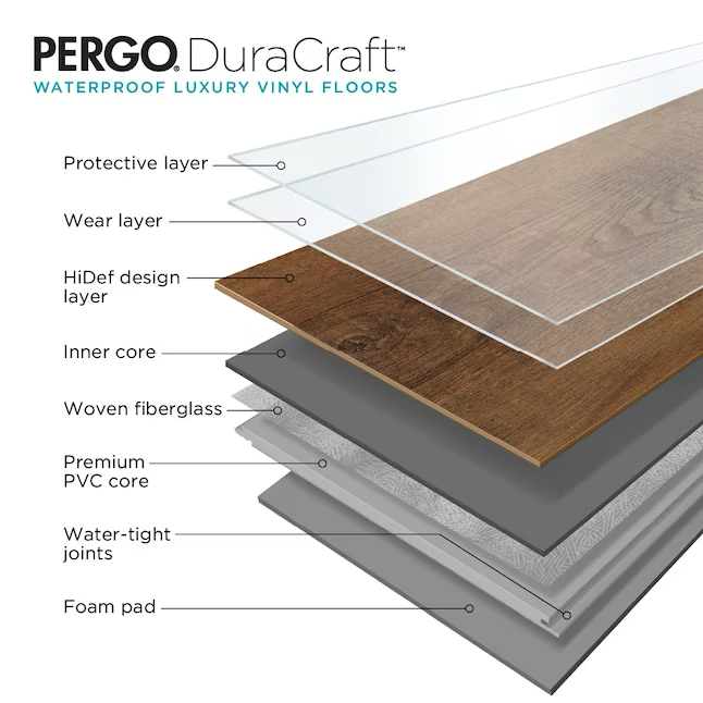 Si busca durabilidad a prueba de agua, no busque más que nuestro piso de vinilo de lujo Pergo DuraCraft Elk Lodge Oak. Estos tablones rígidos ofrecen el tipo adecuado de protección impermeable con la innovadora tecnología WetProtect. Un acabado impermeable y juntas herméticas mantienen la humedad en la superficie para que no se filtre a través de las tablas y dañe el contrapiso. Este piso no solo ofrece durabilidad a prueba de agua, sino que también es hermoso. Estos tablones recrean la apariencia del tradicional roble blanco cortado aserrado con una mezcla de tonos amarillos, tostados y marrones, un relieve cepillado con alambre y un acabado de bajo brillo para una apariencia refinada pero rústica. Como parte de la serie Pergo Craft, este piso cuenta con una garantía de impermeabilidad de superficie y subsuelo que le ofrece mayor protección y mayor tranquilidad.