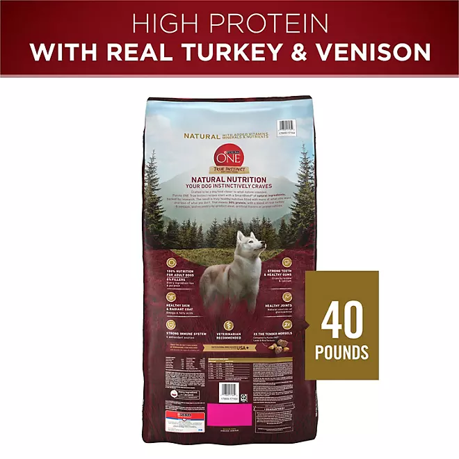 Purina ONE True Instinct Alimento seco para perros, pavo real y venado, 40 lbs.