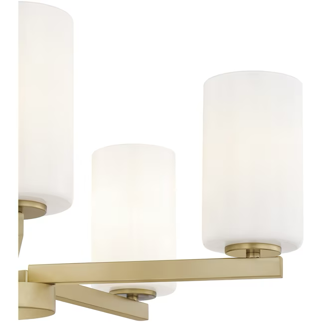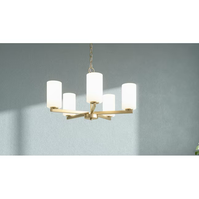 • La pantalla de vidrio ópalo grabado complementa el acabado dorado para lograr un atractivo clásico y moderno de mediados de siglo.
