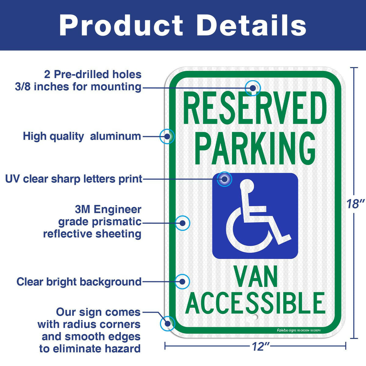 Señal de estacionamiento reservado para furgonetas con acceso para discapacitados (12 x 8 pulgadas)