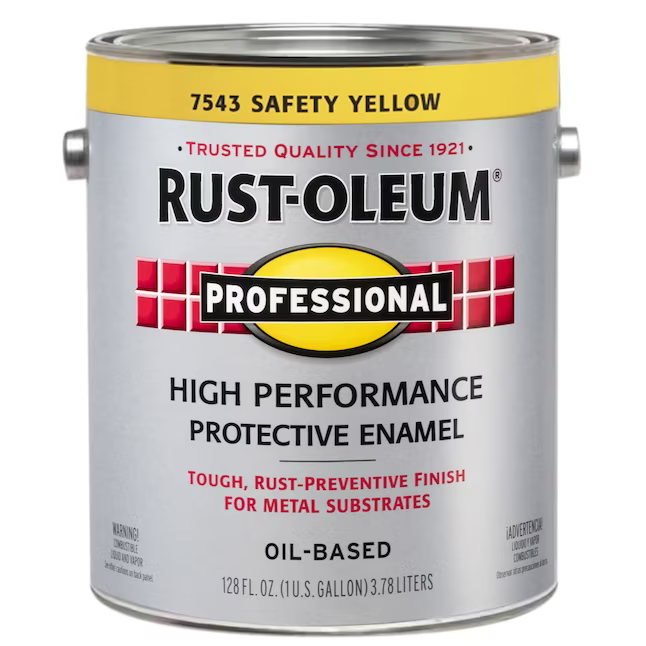 Rust-Oleum Pintura de esmalte industrial a base de aceite para interiores y exteriores, color amarillo brillante, profesional, de seguridad (1 galón)