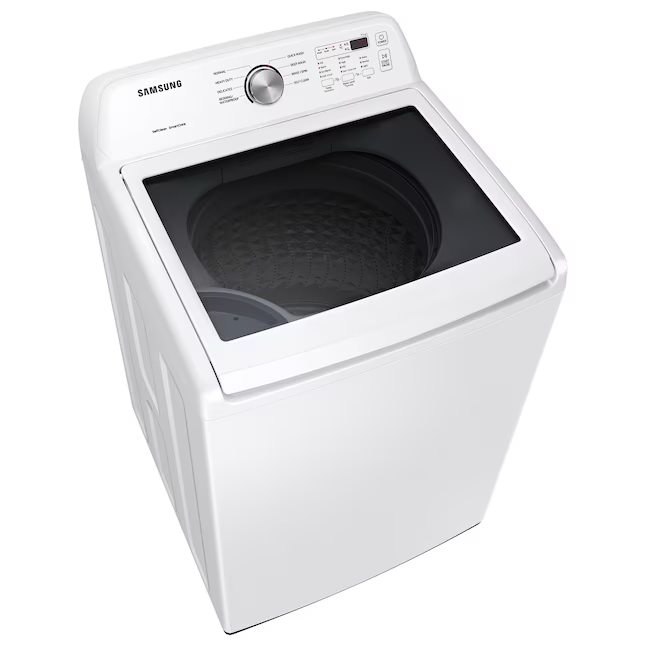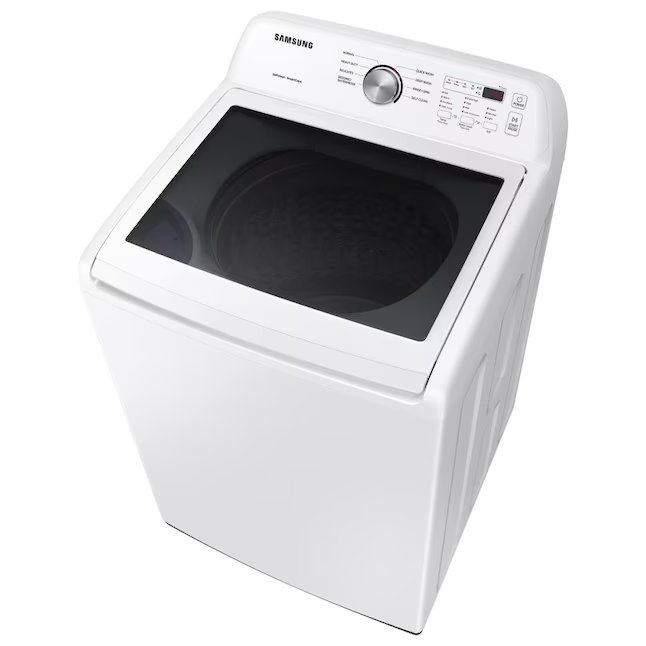 El modelo grande de Samsung de 4,5 pies cúbicos. ft. Capacidad La lavadora de carga superior cabe más en cada carga y reduce el tiempo de lavado. Está equipado con Vibration Reduction Technology+ para reducir el ruido para un lavado silencioso y cuenta con Self Clean para eliminar las bacterias del tambor.