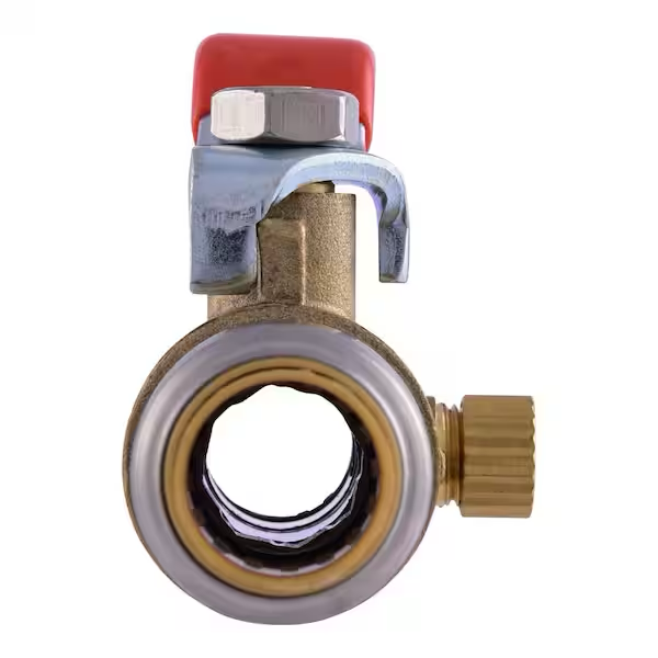 SharkBite Max Válvula de bola de latón de 3/4 pulg. de conexión a presión con drenaje y oreja de caída